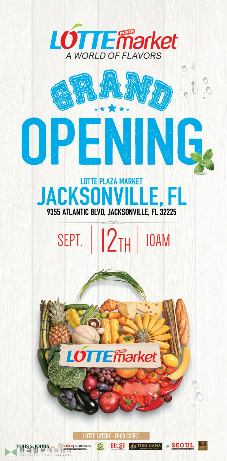 한국과 중국 등 아시아 식료품을 전문으로 하는 글로벌 슈퍼마켓인 롯데 플라자 마켓이 잭슨빌에 9월 12일 매장을 오픈한다고 발표했다.