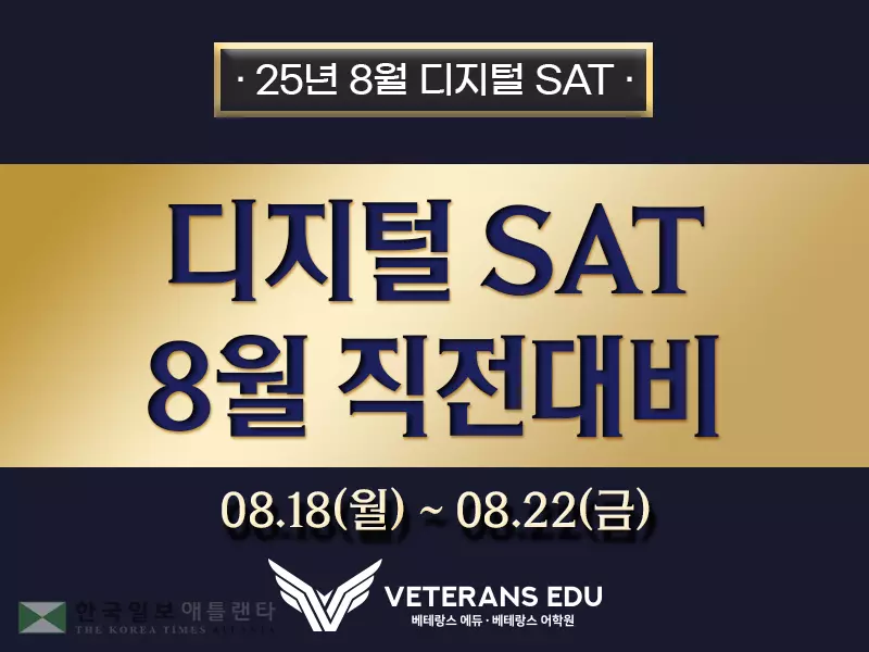 8월 SAT 직전대비 특강! 단 4일, 25년 역대급 난도 최신 출제 경향 반영!