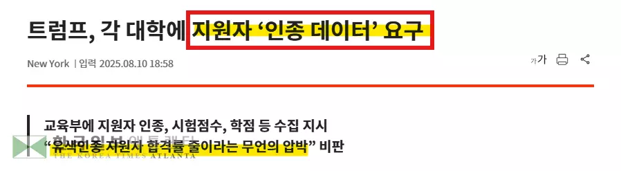 '입학생 인종 밝혀라' 는 말까지 나왔어요.