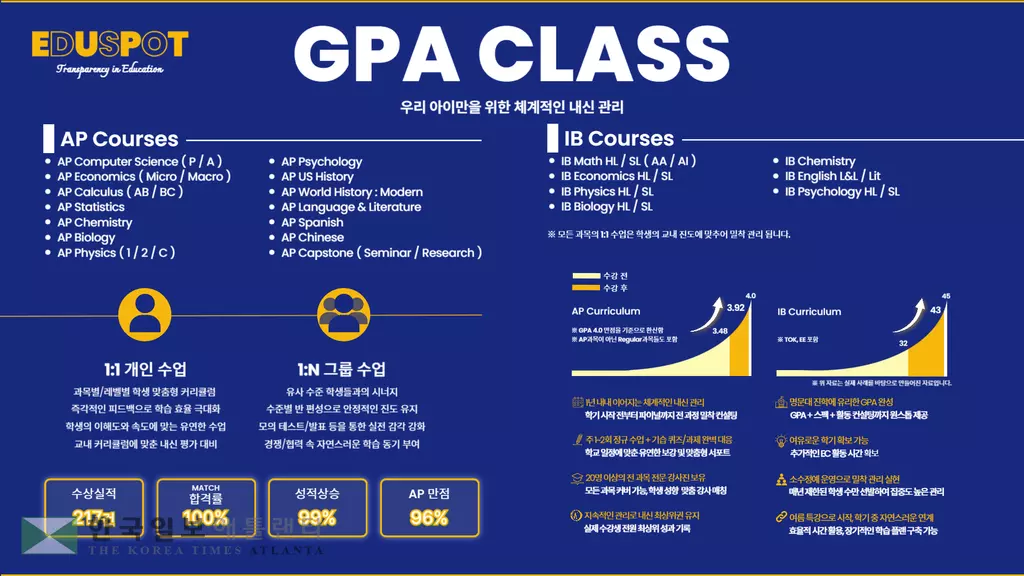 [AP/IB 내신] 에듀스팟 GPA CLASS에서 체계적으로 준비하세요!