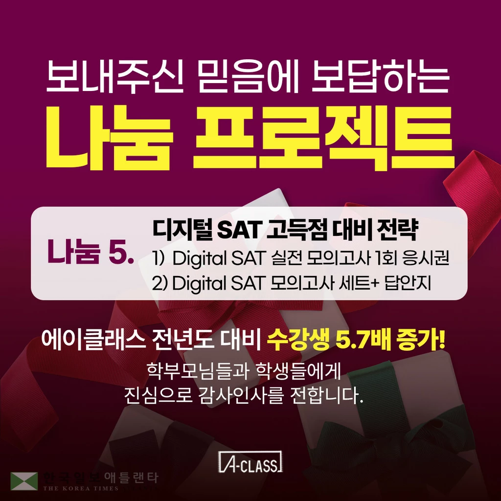 [무료나눔 5] 실제 시험 싱크로율 97.2%! 디지털SAT 실전 모의고사 응시권