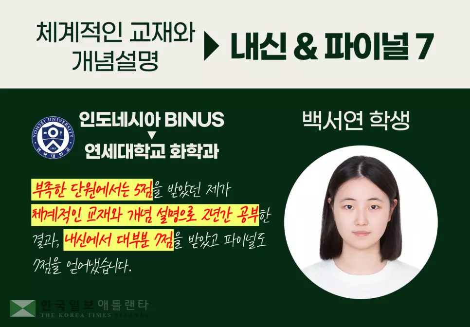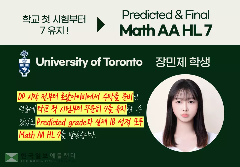 “학교 첫 시험부터 내신 7점 유지, Predicted와 Final 모두 7점 달성.”