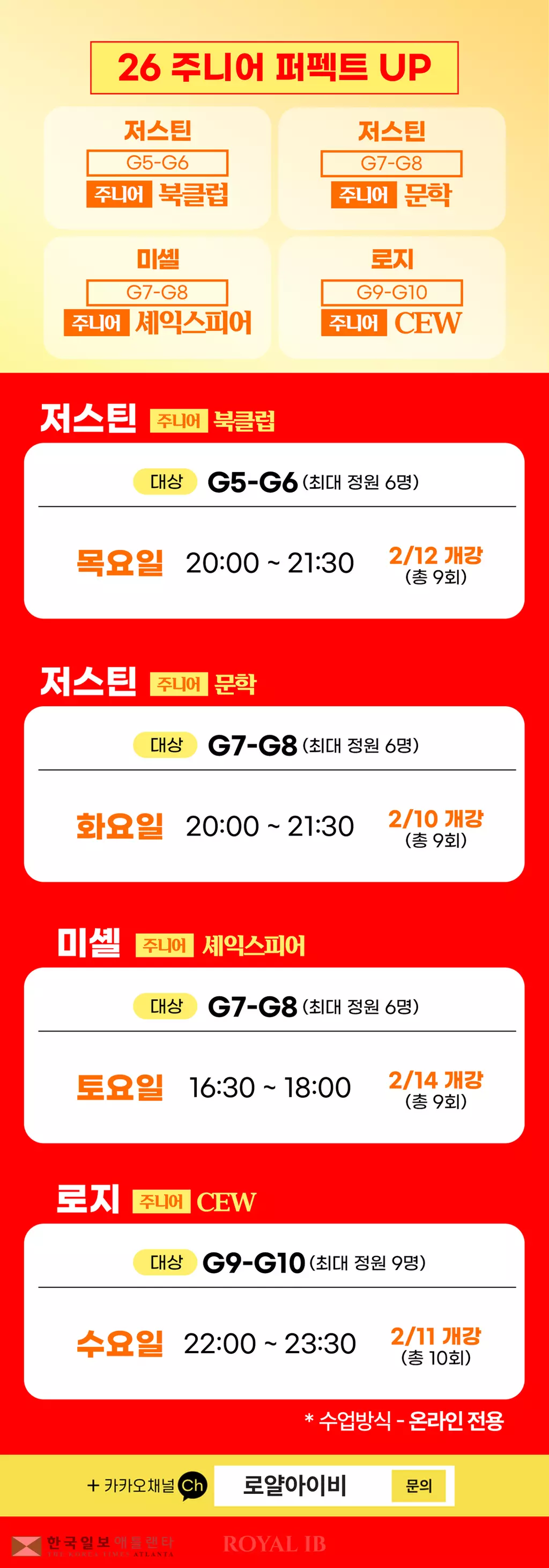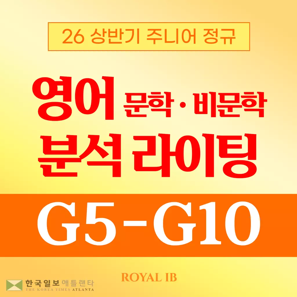 | [주니어 정규수업] 국제학교 G5~G10 맞춤 영어수업! "주니어 퍼펙트 UP" | 38 | 로얄아이비 | 2026-01-25 |