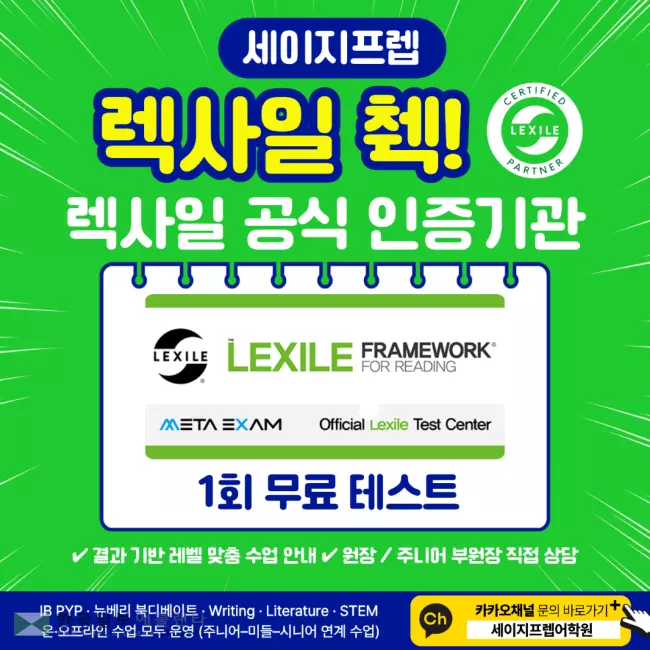 세이지프렙어학원은 Lexile®(렉사일) 공식 인증기관 · 시험센터로