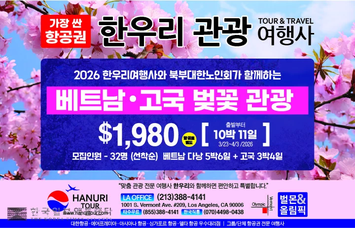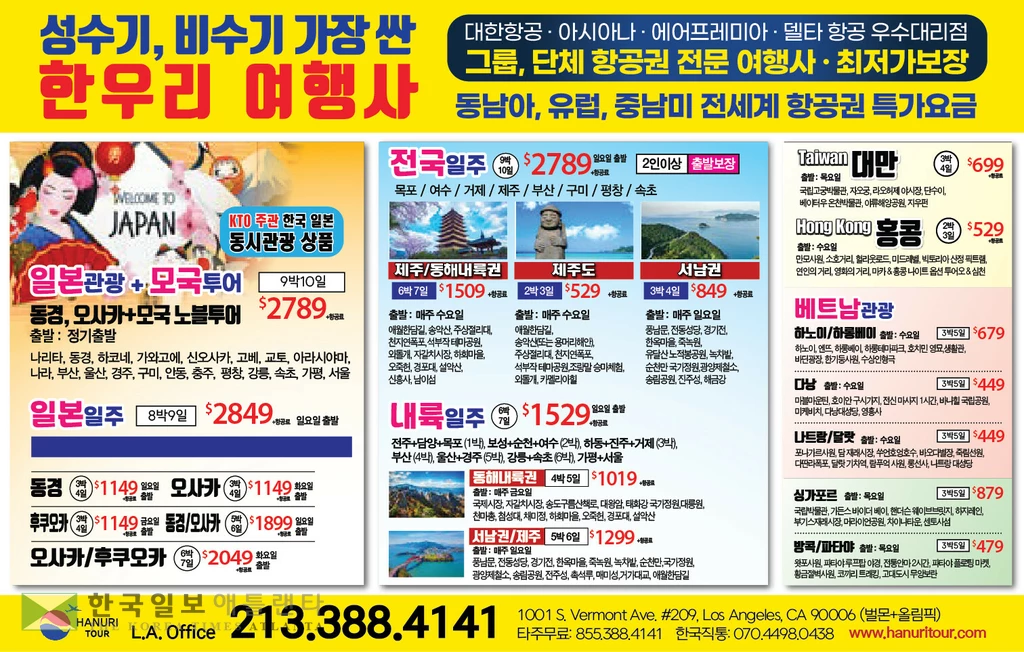 한국및 전 세계 항공(관광)특가 한우리여행사(213-388-4141)
