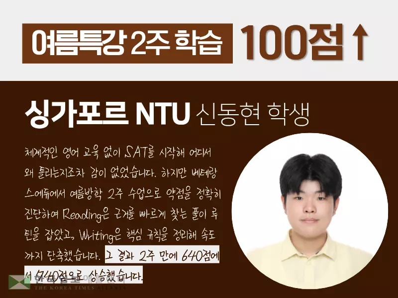 베테랑스 2026 여름특강: SAT 점수는 선택에서 갈립니다.46베테랑스 어학원2026-02-25
