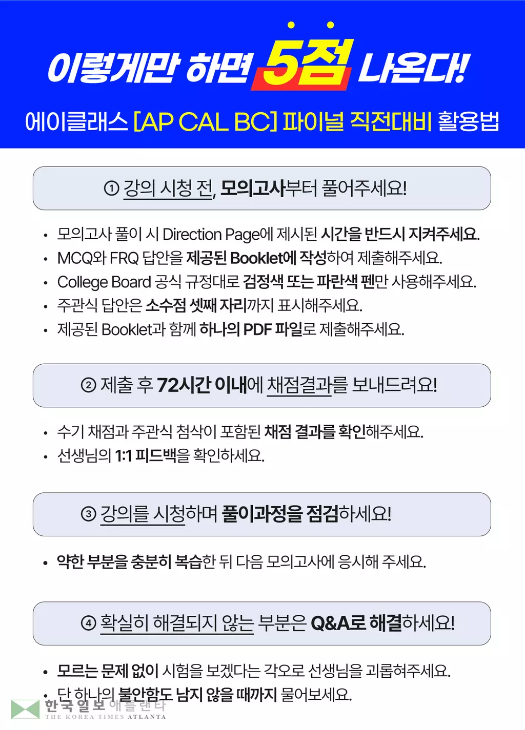 AP CAL BC 5점의 키는 부족한 부분을 꽉 채운 상태로 시험장에 가는 것.