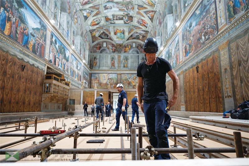 ![교황청이 3일 공개한 사진에 교황청 작업자들이 시스티나 성당에서 콘클라베 준비 작업을 하고 있다. [로이터]](/image/fit/283201.webp)
