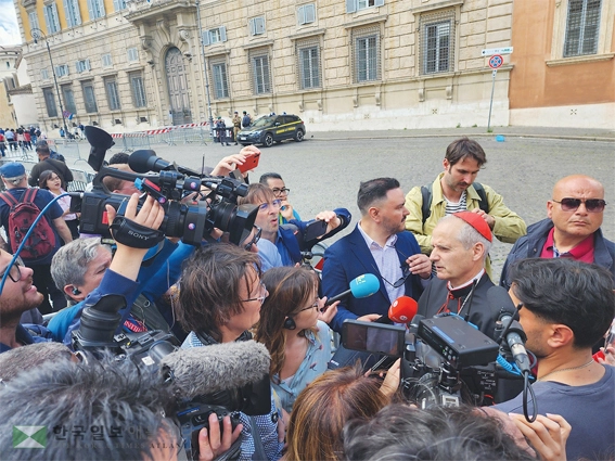 삽시간에 취재진에게 둘러싸인 추기경 중에서 일부는 손을 내저으며 아무 말 없이 빠져나갔고, 또 일부는 “우린 준비돼 있다”는 짧은 말과 함께 조심스럽게 미소만 남긴 채 서둘러 발걸음을 옮겼다. 이번 콘클라베에 한국인 성직자로는 유일하게 참여하는 유흥식 추기경(교황청 성직자부 장관)의 모습은 끝내 포착되지 않았다.
