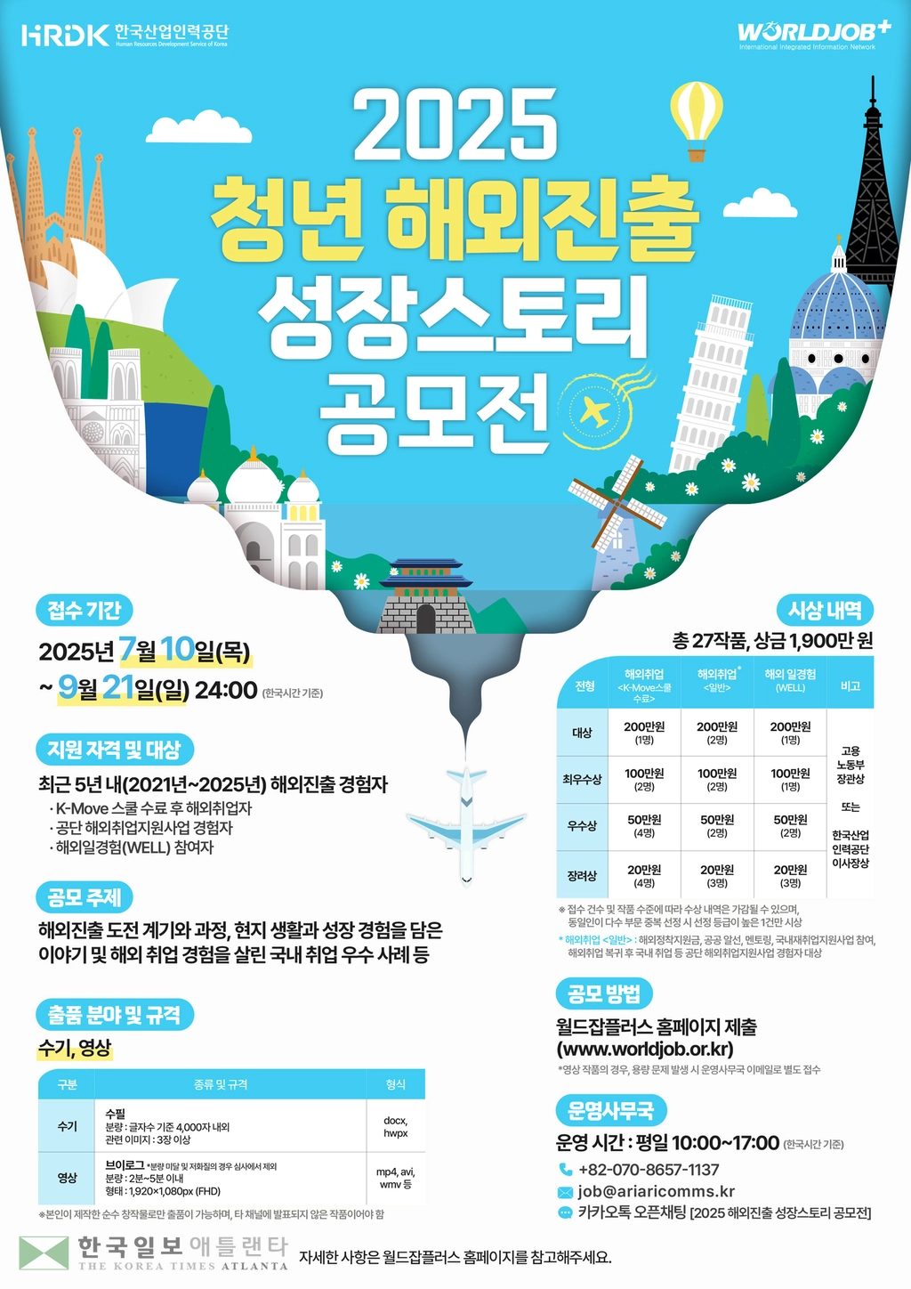 [한국산업인력공단] 2025 청년 해외진출 성장스토리 공모전 (~9/21)