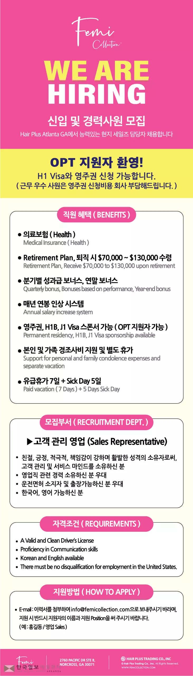HAIR PLUS사에서 미래를 함께 할 영업부 직원을 모집합니다.