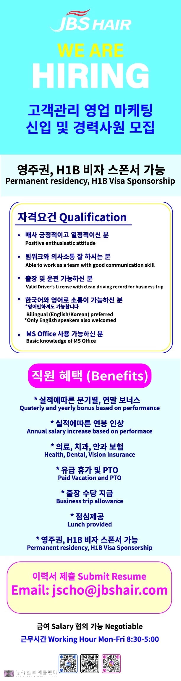 [ 구인·구직 ][채용공고] 미주한인상공회의소총연합회(KACCUSA) 사무·행정 보조 직원 모집121Grace Yoo2025-11-26