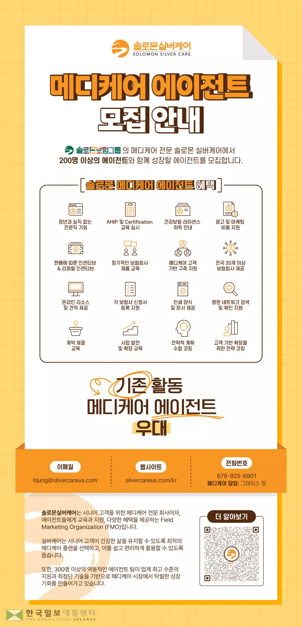 메디케어 에이전트 모집 - 솔로몬보험그룹 에이전트만을 위한 든든한 지원 및 혜택 제공!