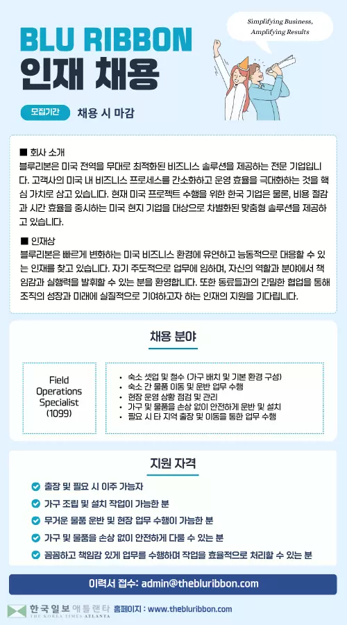 블루리본(Blu Ribbon) 채용: Field Operations Specialist (1099)