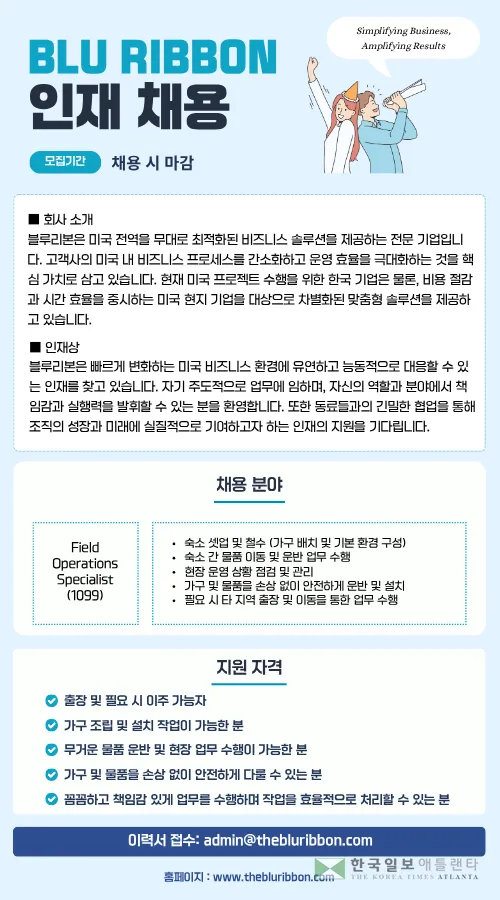 블루리본(Blu Ribbon) 채용: Field Operations Specialist (1099)
