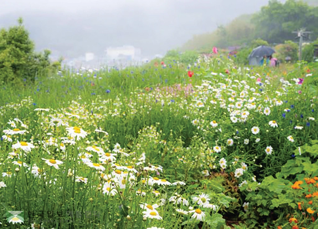길의 끝에는 원시림과 함께 쑥섬을 세상에 알린 ‘공중정원’이 있다. 지역 중학교 교사 김상현(57), 약사 고채훈(54) 부부가 20년 넘게 정성으로 가꾼 정원이다. 해발 83m에 7,549㎡ 규모다. 2000년 새해에 남편인 김씨가 “남은 인생 동안 하고 싶은 일을 적어 보자”고 제안했고, 부부는 일심동체로 ‘사회공헌’을 떠올렸다. 부부는 섬의 자연과 문화를 지키면서 발전에 기여할 수 있는 사업으로 낙후된 쑥섬 정상에 꽃을 심기로 했다. 정원 부지를 매입하는 데에만 8년이 걸렸다.
