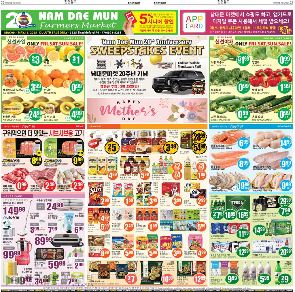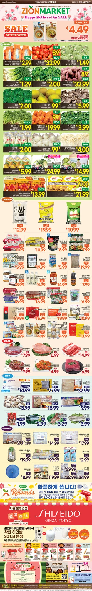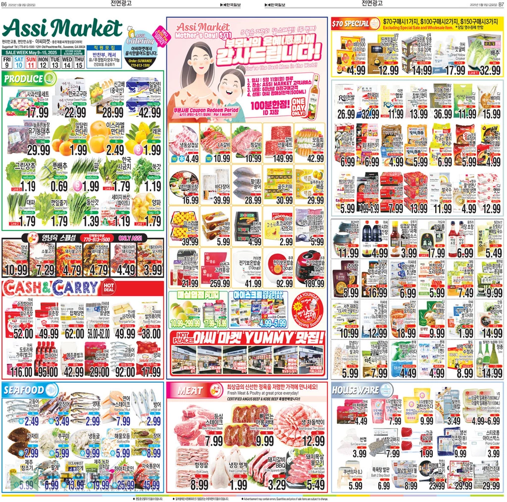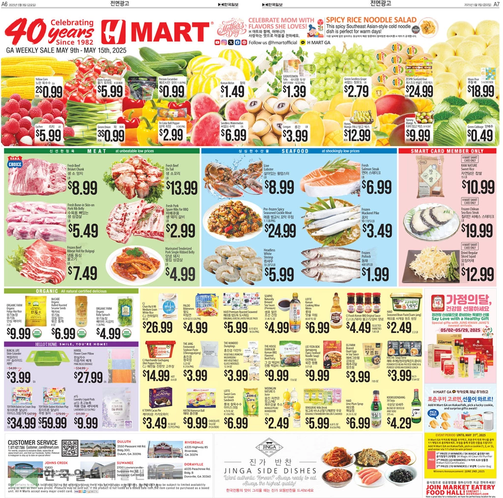 정육 코너에서는 등심 스테이크LB 7.99, 낙엽살 로스구이LB 9.99, 생 차돌박이LB 12.99, 돼지갈비 BBQ LB 3.29, 냉장 영계LB 1.99, 항정살 LB 8.99, 돼지목살 불고기 LB 5.49에 선보인다. 그로서리 곡물코너에서는 한국미 쌀 40 LB 32.99, 니시끼 프리미엄 40 LB 45.99, 이천 쌀 15 LB 11.99, 해남 유기농가바쌀4 KG 36.99, 해남 유기농 현미쌀4 KG 36.99에 판매된다.