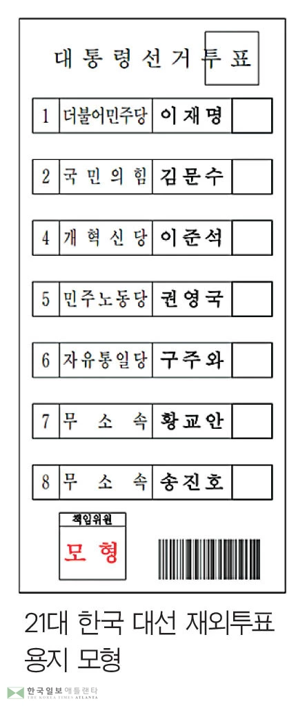 대한민국 제21대 대통령선거 미동남부지역 재외투표가 5월 20일 오전 8시 애틀랜타총영사관 재외투표소인 애틀랜타한인회관을 비롯해 전 세계 118개국 223개 투표소에서 일제히 시작됐다.