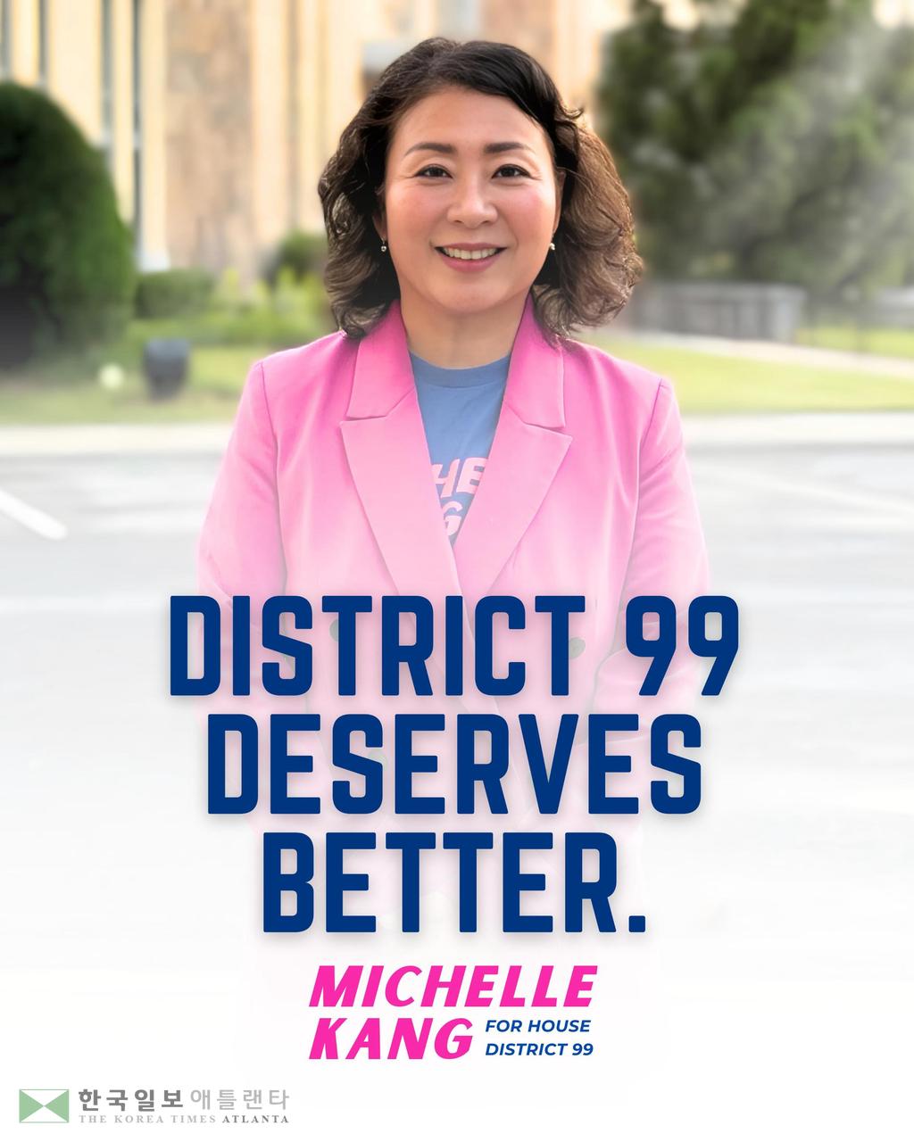 미쉘 강 후보가 12일 내년 11월 열리는 조지아 주 하원 99지역구 선거에 재출마한다고 발표했다. 99지역구는 스와니 지역과 둘루스 하이웨이 북쪽, 슈가힐 지역을 포함한다.
