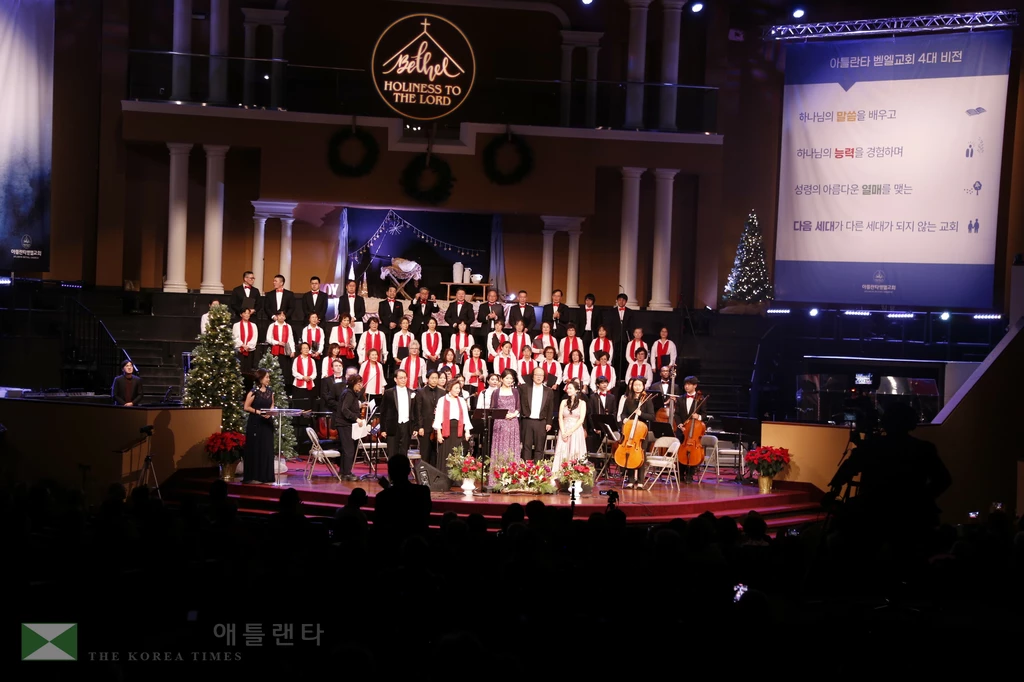 21일 아틀란타 벧엘교회에서 열린 메시아 대연주회에서 유진 리 지휘자의 인도로 합창단이 할렐루야를 연주하고 있다.