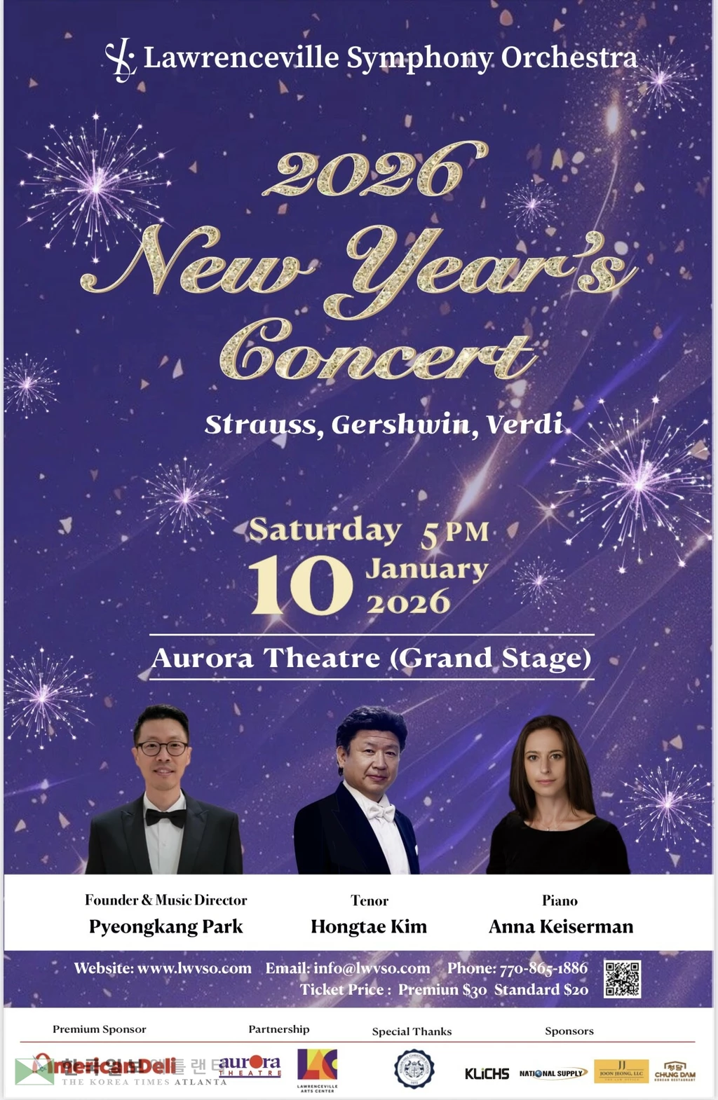 로렌스빌 심포니 오케스트라(LSO, 설립 및 음악 감독 박평강)가 오는 1월 10일(토) 오후 5시, 로렌스빌 오로라 극장에서 ‘2026 New Year’s Concert’를 개최하며 새해의 포문을 연다.