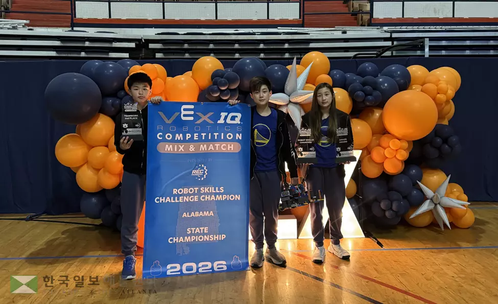 Team Warriors는 이지안(13), 이지우(12), 안유빈(12) 학생으로 구성된 팀으로, 2025-2026 시즌 ‘Mix and Match’ 게임에서 이미 눈부신 행보를 이어왔다. 이들은 시즌 동안 총 8개의 지역 대회에 참가해 총 17개의 상을 휩쓸며 일찌감치 주 챔피언십 대회 출전권을 확보했다. 특히 Skills 부문에서 436점을 기록해 현재까지도 앨라배마 최고 기록을 보유하고 있다.