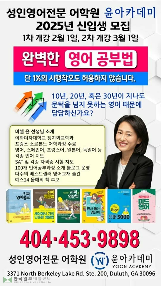 윤아카데미의 2025년 신입생 모집과 관련한 문의사항은 404-453-9898로 할 수 있다. <김지혜 기자>