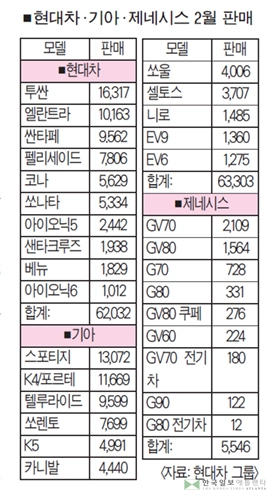 이는 역대 2월 판매량으로는 최고라고 회사 측은 전했다. 이로써 현대차는 전년 같은 기간 대비 월간 최고 판매 연속 기록을 5개월로 늘렸다.