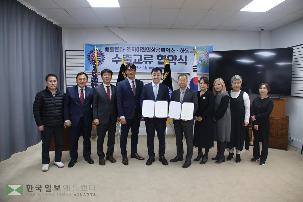 10일 오후 하 군수 일행은 애틀랜타조지아한인상공회의소를 방문해 상의 한오동 회장 등 임원진과 간담회를 갖고 우호협력합의서(MOU)를 체결했다. 한오동 회장은 한 달 앞으로 다가온 제23차 세계한인비즈니스대회에 대해 소개하는 시간을 가졌으며, 하 군수는 하동군 농특산물의 미주시장 개척을 위해 양 기관간 교류와 협력이 증진되기를 기대한다고 밝혔다.