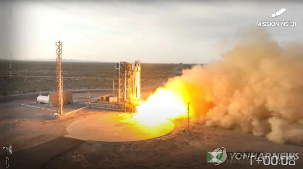 AP통신과 CNN 방송 등에 따르면 블루 오리진의 우주선 '뉴 셰퍼드'가 14일(현지시간) 오전 미국 텍사스주 웨스트 텍사스에서 발사돼 약 10분간의 우주 비행(임무명 NS-31)을 마치고 지구로 복귀했다.