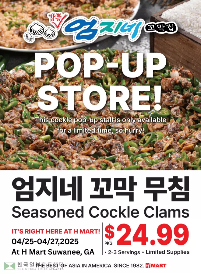 미주 최대 아시안 슈퍼마켓 체인인 H 마트가 ‘강릉 엄지네 꼬막 팝업 스토어’를 개최한다. 이번 팝업 스토어는 조지아 스와니점에서 오는 4월 25일부터 27일까지 사흘간 진행될 예정이며, 한국의 대표 포장마차 메뉴 중 하나인 ‘꼬막무침’이 한정 수량으로 판매된다.
