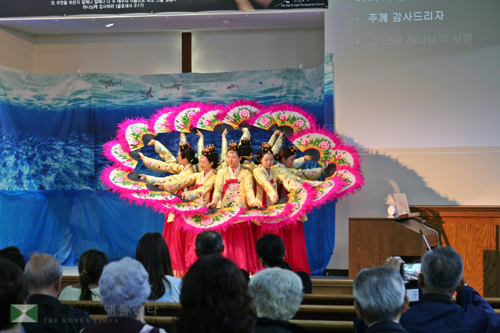 이어 영상으로 합창단의 활동을 보여주었고, 단원들의 부채춤 ‘아른다운 나라’가 선보여 큰 박수를 받았다.
