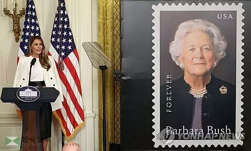 1월 트럼프 대통령 취임 이후 백악관보다 '트럼프 타워'가 있는 뉴욕이나 자택이 있는 플로리다주 마러라고에 있는 날이 더 많다는 말을 들어온 멜라니아 여사는 이날 이 행사 뿐 아니라 고(故) 조지 H.W. 부시 전 대통령의 부인인 바버라 부시 여사(2018년 별세)의 초상화가 새겨진 우표를 공개하는 행사도 주관했다.