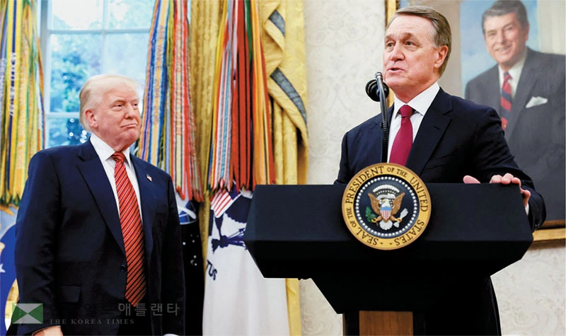 ![주중 미국대사 임명식. 신임 주중국 미국대사로 임명된 데이비드 퍼듀(오른쪽) 전 상원의원이 7일 워싱턴 백악관에서 열린 대사 임명식에 참석해 도널드 트럼프 대통 령이 지켜보는 가운데 소감을 전하고 있다. [로이터]](/image/fit/283328.webp)