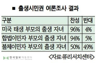 출생시민권(birthright citizenship) 자동 부여에 대한 미국 내 찬반 여론이 반반으로 갈린 것으로 나타났다.