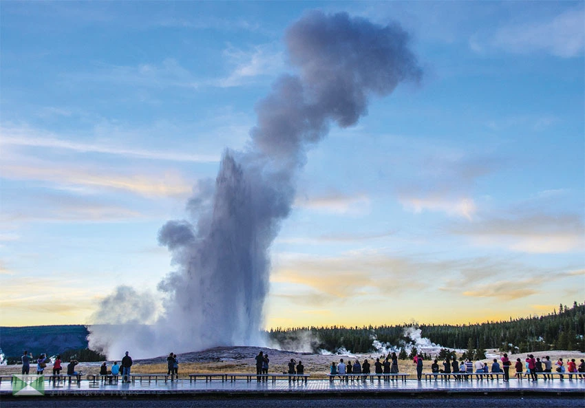 잠시 기다리면 어김없이 물줄기를 토해내는 ‘올드 페이스풀’(Old Faithful)은 옐로스톤의 상징과도 같다. 하루 16~17회 정도, 약 90분 간격으로 매번 8,000갤런 이상의 엄청난 온천수를 160피트 높이로 약 4분간 뿜어낸다. 공원 내 1만여 개의 간헐천 중 이처럼 분출 간격이 규칙적인 간헐천은 올드 페이스풀이 유일하다.