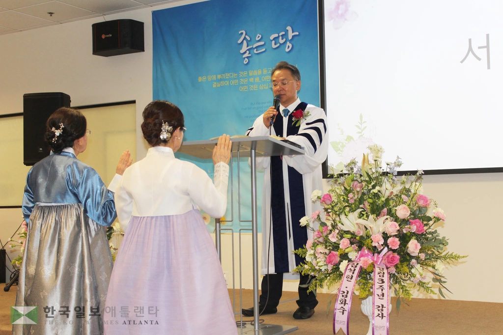 장 목사는 “새로남교회 또한 무릎으로 눈물로 기도하며 세워진 교회다. 기도 없이 교회가 세워지지 않는다. 지금도 눈물로 기도하고 있다. 한사람이 변화하면 교회도 변화되고, 애틀랜타도 변화시킬 수 있다. 교회는 기도하기 위해 성도를 세우고 목사를 보호해주고 존재하는 것이다. 예수님과 예수님을 따르는 사람들을 섬기면 믿음의 여인들이 권사님들의 모델이 될 것이다. 우리 모두 쓰임 받는 사람이 되자”고 설교했다.