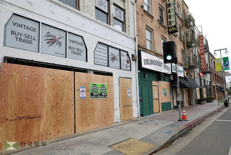 ![불체자 단속 및 시위로 소매업계가 어려움을 겪고 있다. LA 리틀도쿄 지역 상점들이 14일 약탈에 대비, 나무판자로 보호막을 설치하고 영업을 중단했다. [로이터]](/image/fit/284217.webp)