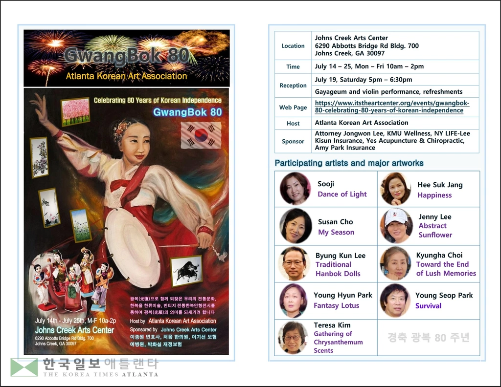광복 80주년을 맞아 애틀랜타 한인미술협회(회장 이병근)가 주최하는 특별 전시회 ‘광복 80: Celebrating 80 Years of Korean Independence’가 개최된다.