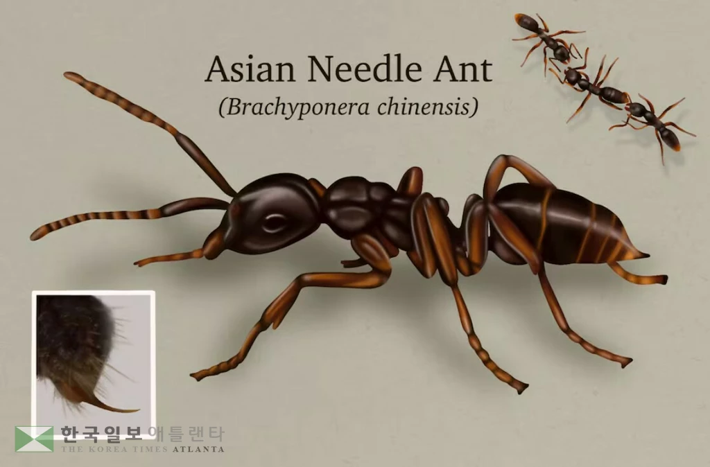 독성을 지닌 아시안 침 개미((Asian needle ant)가 조지아에서 확산되고 있어 주의가 요구되고 있다.