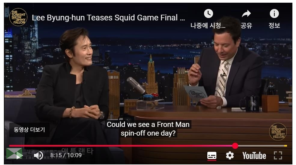배우 이병헌이 미국의 인기 TV 토크쇼 '더 투나잇 쇼 스타링 지미 팰런'(The Tonight Show Starring Jimmy Fallon)에 출연해 이달 하순 공개 예정인 '오징어 게임' 시즌3을 홍보했다.