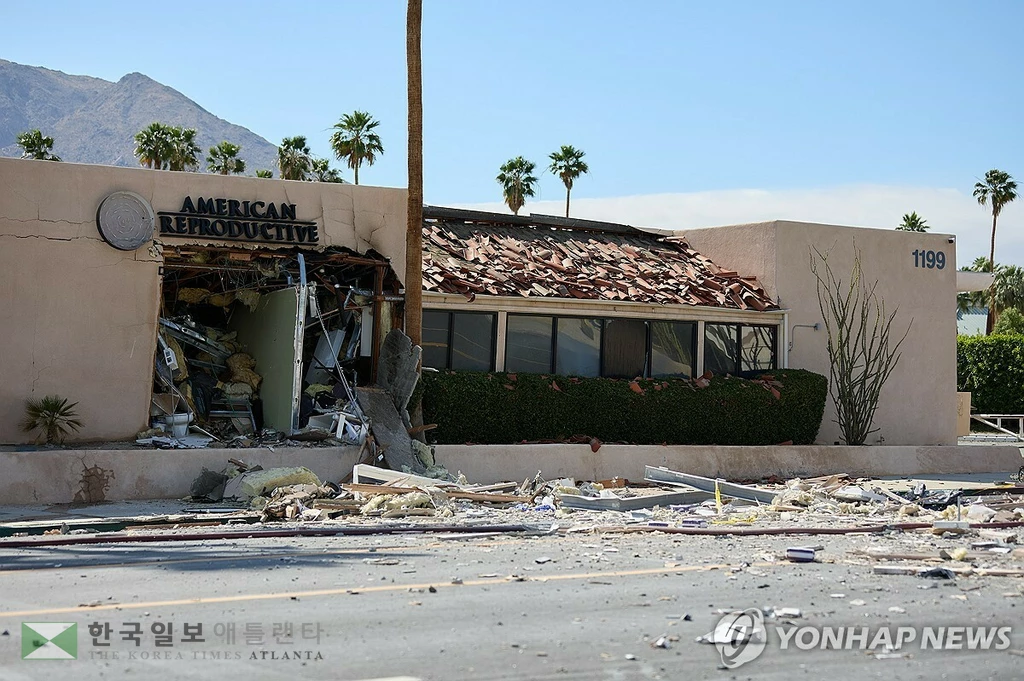 ![지난달 17일 미 캘리포니아주 팜스프링스에서 차량 폭발 테러로 심하게 파손된 난임 클리닉 건물