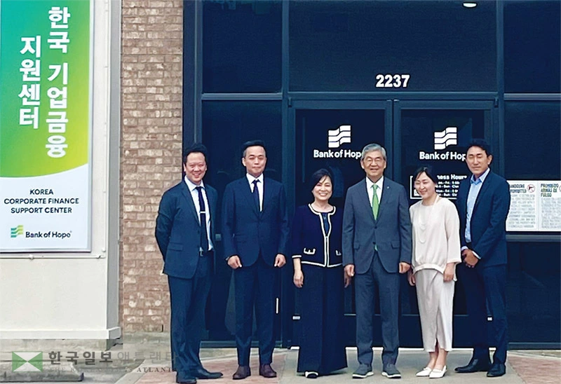 뱅크오브호프(행장 케빈 김)가 LA를 비롯, 애틀랜타, 뉴저지, 뉴욕, 텍사스 2곳 등 미 전역 6곳에 미국에 진출한 한국 기업들을 위한‘한국기업 금융지원센터’(K 금융센터)를 가동했다고 25일 밝혔다. 금융지원센터는 한국 기업들에게 대출부터 자문, 재무서비스 등 한 차원 높은 원스톱 금융 서비스를 제공한다. 25일 텍사스주 달라스 금융지원센터 현판식에서 케빈 김 행장(오른쪽에서 3번째) 등 은행 관계자들이 한 자리에 모였다.