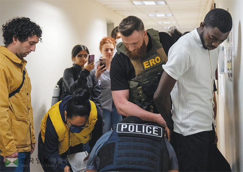 ![지난 27일 뉴욕 이민법원에서 ICE 요원들이 이민자를 체포하고 있다. [로이터]](/image/fit/284515.webp)