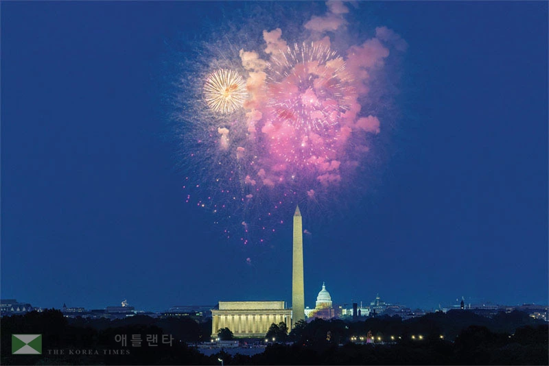 미국 탄생 249돌을 기념하는 독립기념일 행사가 지난 4일 미 전국 곳곳에서 화려하게 펼쳐졌다. 이날 독립기념일 축하 행사의 대미는 초대형 불꽃놀이가 장식했다. 워싱턴 DC의 내셔널몰에 독립기념을 행사를 즐기려는 수많은 인파가 몰린 가운데 링컨 기념관 상공으로 화려한 불꽃놀이가 펼쳐지고 있다.
