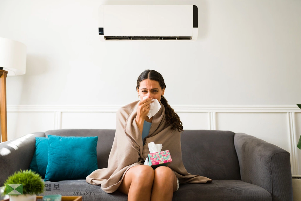 감염 시에는 두통, 콧물, 목 통증 등의 증상이 나타나며 장기간 냉방된 환경에 노출되면 증상이 더욱 심해질 수 있다.