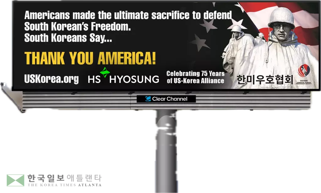 한미우호협회는 1996년부터 올해까지 29년 동안 '한국전쟁 정전기념일'(7월27일)에 맞춰 미국 내 주요 5-10개 도시 도로에 빌보드 광고를 하고 있다.
