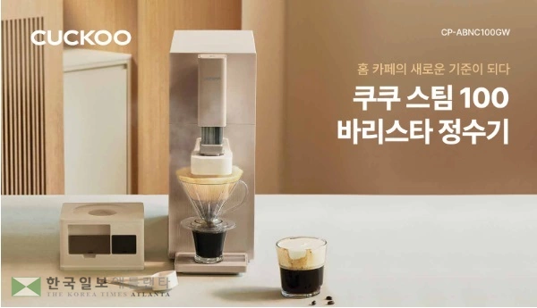 프리미엄 생활가전 브랜드로 애틀랜타 한인들에게도 큰 인기를 끌고 있는 쿠쿠(CUCKOO)가 정수와 커피 브루잉을 동시에 만족시키는 신제품 스팀 100 바리스타 정수기 CP-ABNC100GWH 를 선보인다.