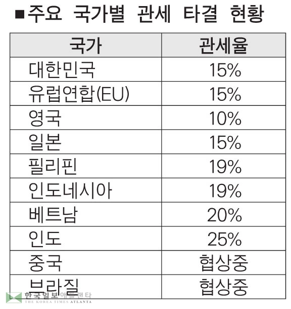 트럼프 대통령이 한국에 부과하기로 한 상호관세 15%는 앞서 미국이 일본, 유럽연합(EU)과 합의한 상호관세율과 같다. 대미 투자 규모의 경우 일본은 미국이 선정하는 사업에 5,500억달러를 투자하기로 했으며 그 투자 수익의 90%는 미국이 가져간다고 트럼프 행정부가 설명한 바 있다. 트럼프 대통령은 한국의 투자에 대해 수익 배분 비율은 아예 언급하지 않았다.