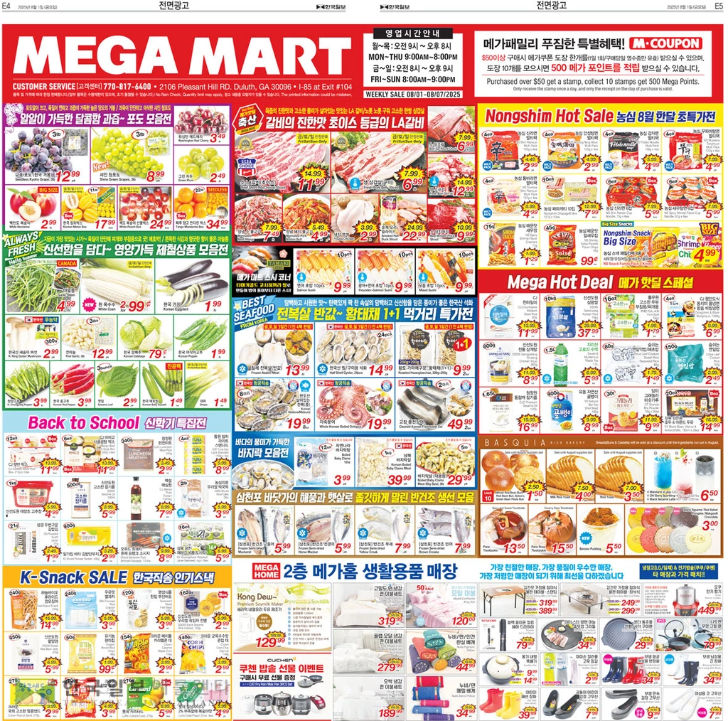 이번주 메인 품목으로는 농심 신 라면 컵 (6P) 6.99, 너구리 컵 (6P) 6.99, 삼양 불닭 볶음면 컵 (6P) 8.99, 핵 불닭 볶음면 컵 (6P) 8.99, CJ햇반 컵반, 미역국밥5.8OZ 3.49, 햇반 컵반, 순두부찌개 국밥6OZ 3.49, 이천쌀 15 LB 11.99, 오천년 썬김치 19.99, 아씨 고추장 튜브10.58 OZ 3.99, 동원 살코기 참치 4캔9.99, 롯데 고추참치 삼각김밥11.64 OZ 6.99, 비비고 불고기주먹밥500 G 8.99, 호멜스팸 클래식12OZ 4.49, 오뚜기밥친구(김자반)33.3 G 4.49, 뿌셔뿌셔 (떡볶이) 3.17 OZ 2FOR$2.00, 오리온 초코파이16.5OZ 2.99, 팔도 뽀로로 드링크 (사과맛)7.95OZ 0.99, 뽀로로 드링크 (열대과일맛)7.95OZ 0.99, JELLY-B곤약 드링크 블루베리 10팩11.99, EDISON 뽀로로 젓가락EA 4.99 등이 선보인다.